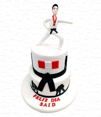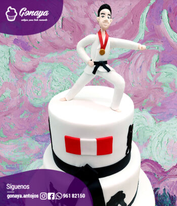 La torta es elaborada con fondant con detalles elaborados en azúcar. Pedido con 7 díás de anticipación.