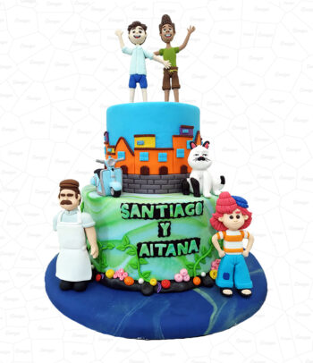 La torta es elaborada con fondant con detalles elaborados en azúcar. Pedido con 5 díás de anticipación.